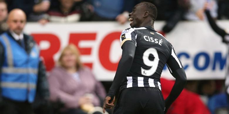 Striker Newcastle United, Papiss Demba Cisse, saat merayakan golnya ke gawang Chelsea pada pertandingan lanjutan Premier League di St James Park, Sabtu (6/12/2014).Pada menit ke-81, Newcastle harus bertanding dengan 10 pemain setelah Steven Taylor menerima kartu kuning kedua dari wasit setelah melanggar Andre Schuerrle di depan kotak penaltinya.